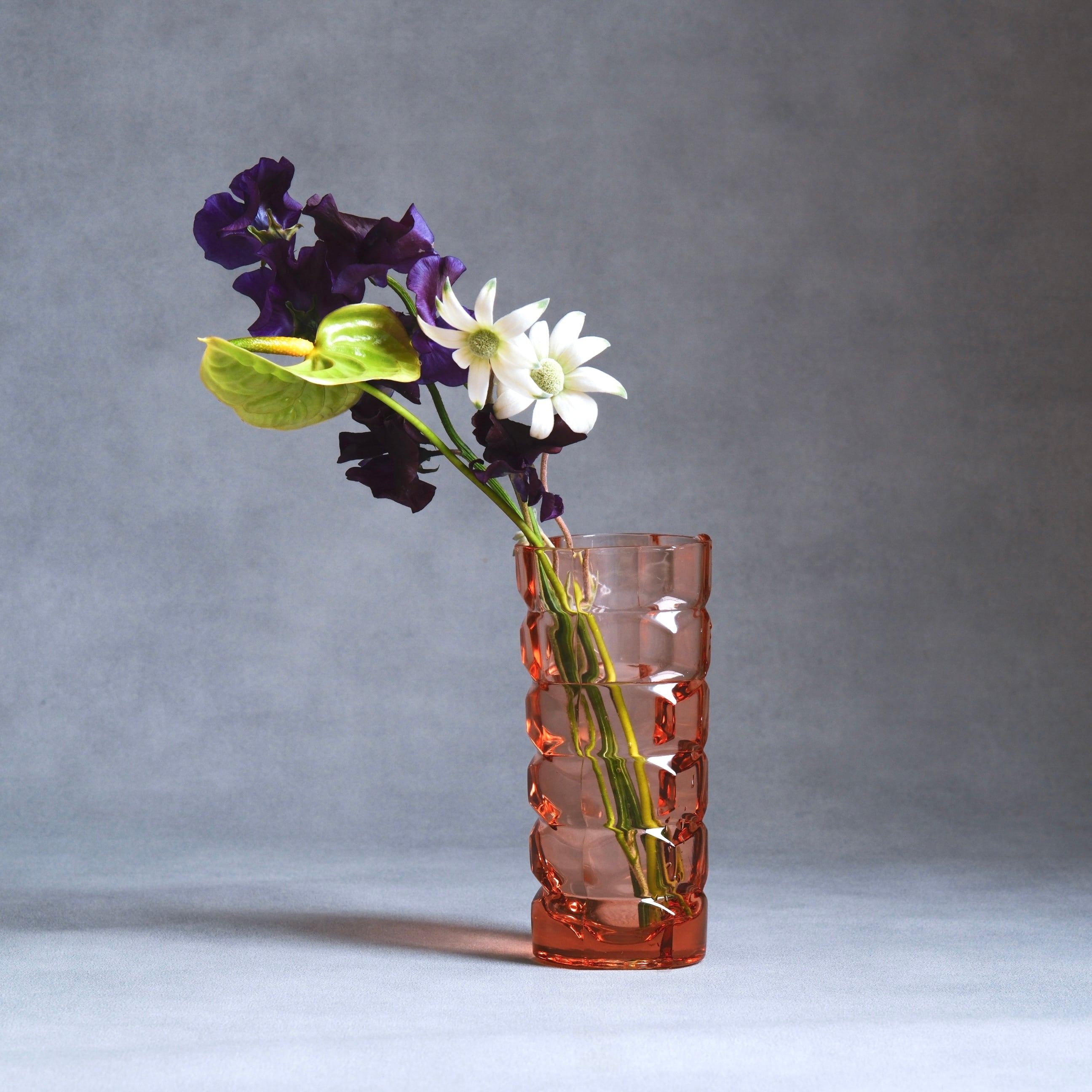 1948年創業、フランスで誕生した人気ガラスメーカーLuminarcのフラワーベース。ロザリンピンクと呼ばれるほんのりオレンジがかったピンクのガラスが特徴です。厚手のガラスで重厚感があります。
