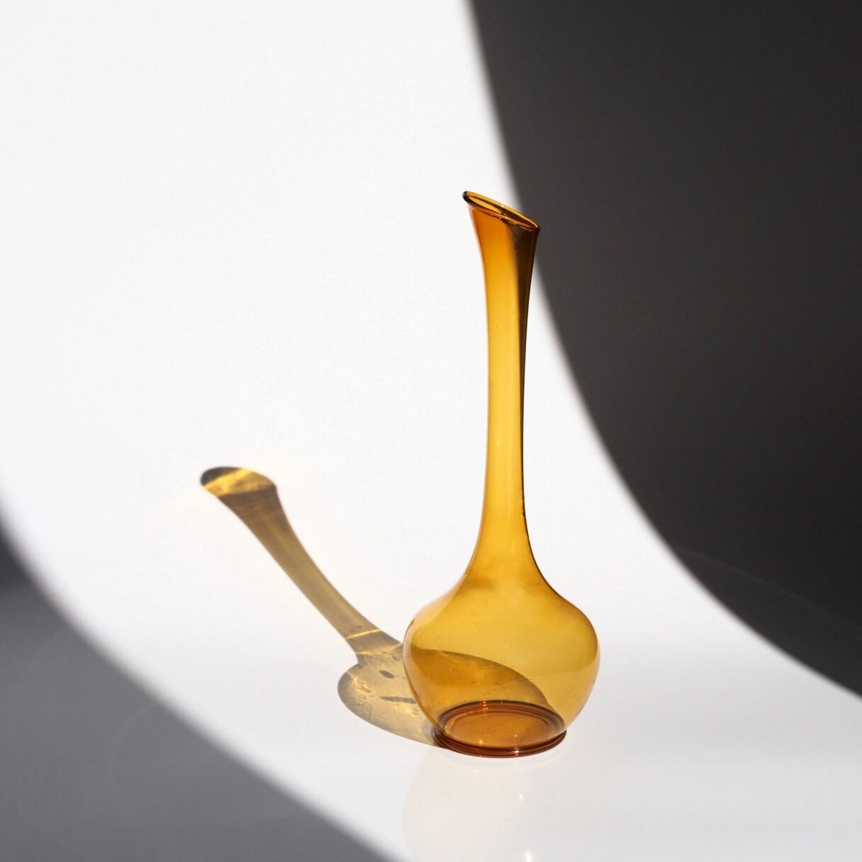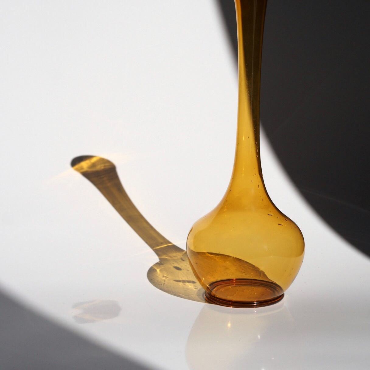ドイツ・ラウシャ地方で生まれた伝統的な吹きガラス技法で作られた、明るい琥珀色が美しいガラス製フラワーベース。柔らかく膨らんだベース部分としなやかに伸びるシルエットは、1輪挿しとして花の魅力を引き立ててくれます。Luscha(ラウシャ)ガラスは、ドイツの・チューリンゲン州の山間で何世代にも渡り受け継がれてきた職人技術の結晶とも言える工芸品。光を受けるたびに柔らかく反射し、美しい影を生み出します。程よく薄く、軽いのが特徴です。