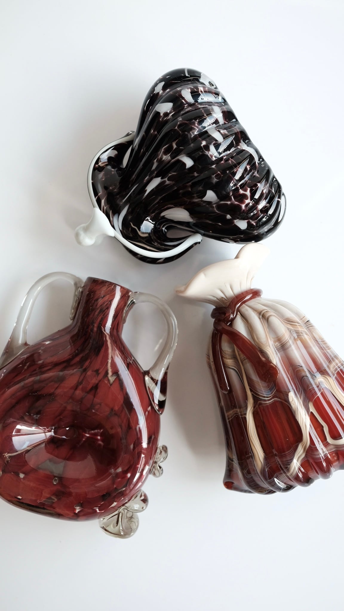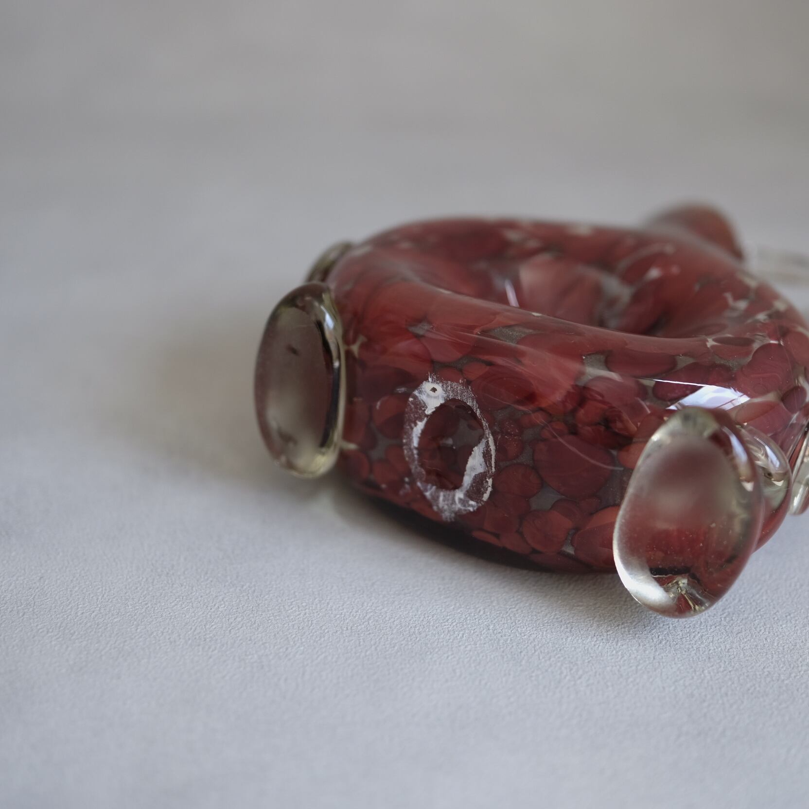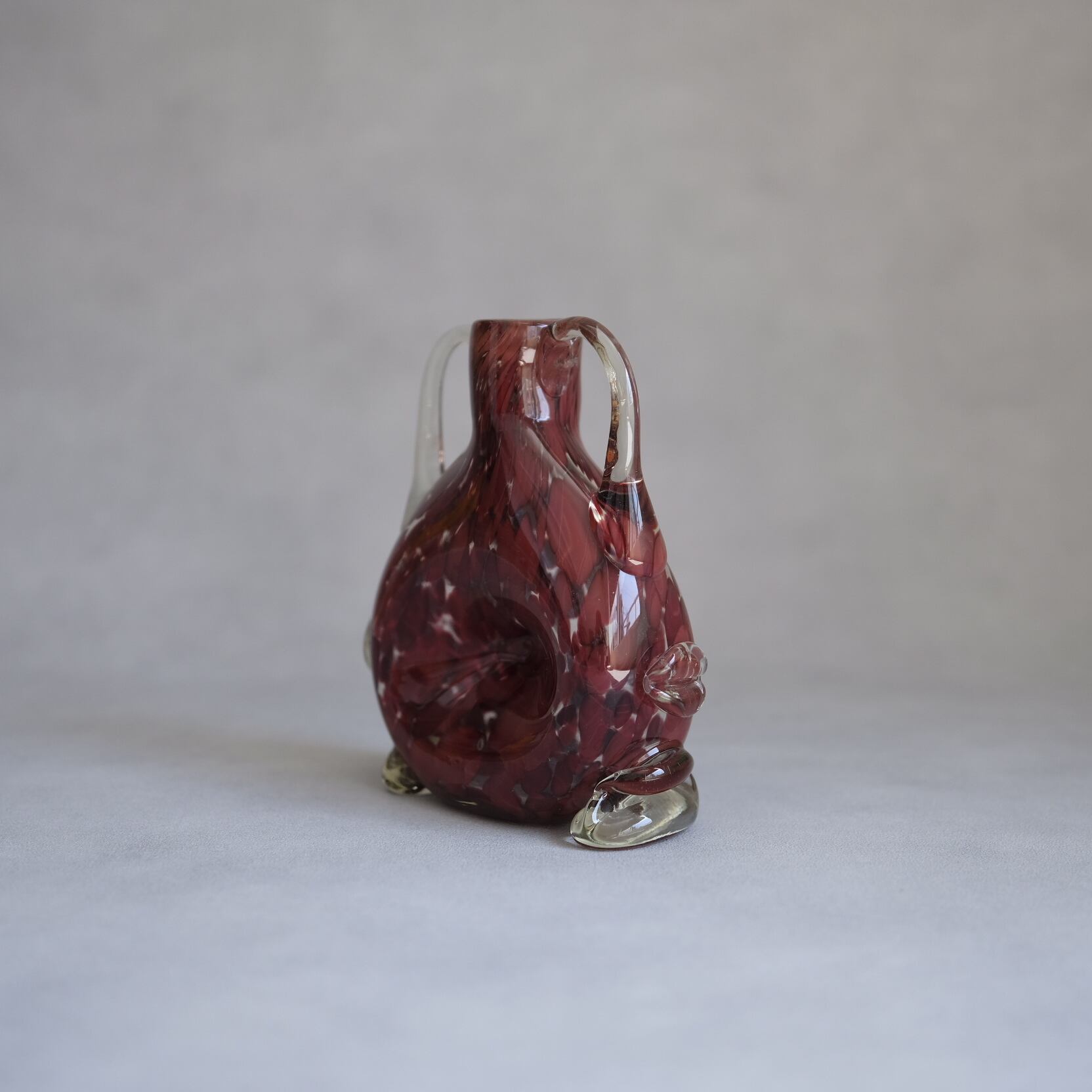 落ち着いたボルドーカラーと個性的で珍しいフォルムが印象的なガラス製フラワーベース。手吹きガラスならではの温かみのあるデザインです。ずっしりとした佇まいはインテリアのオブジェとしても。