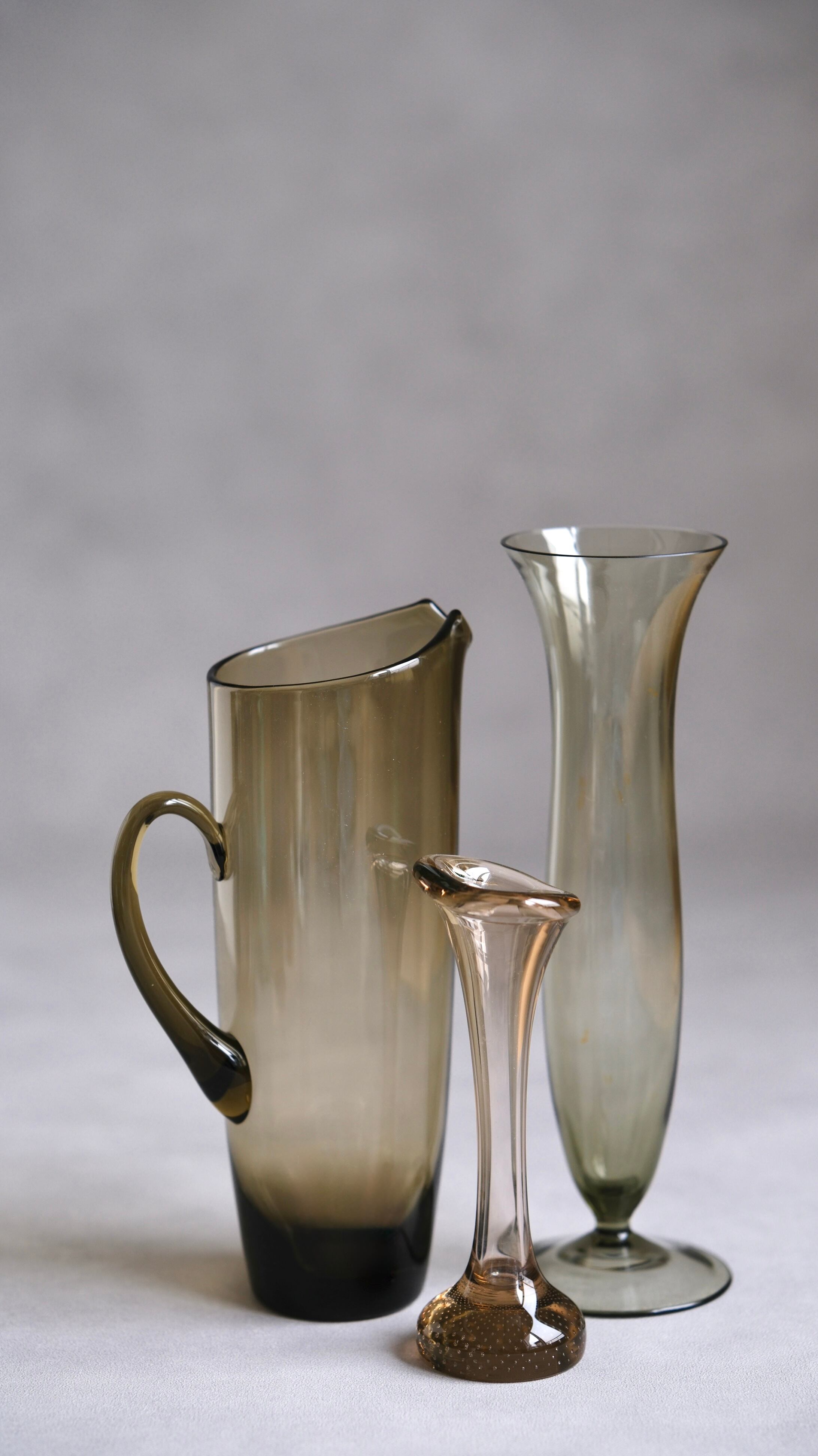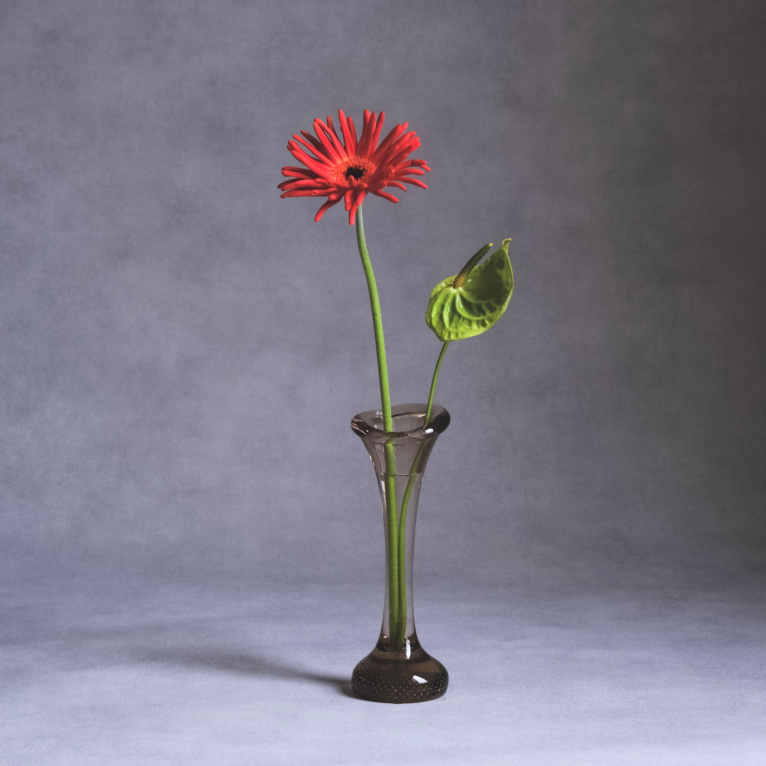 。絶妙なスモークがかったブラウンの色合いが魅力です。繊細な一輪の花はもちろん、オブジェ単体としても、北欧ヴィンテージならではの洗練された空間を演出します。