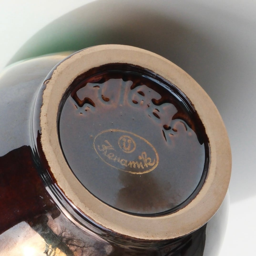 ドイツで活動していた陶磁器メーカーのひとつで、主に20世紀中頃のヴィンテージ市場で知られています。西ドイツ製のフラワーベースやオブジェを中心に、独特の釉薬表現やフォルムデザインが評価されており、“Fat Lava”と呼ばれるスタイルにも通じる力強い質感が魅力です。