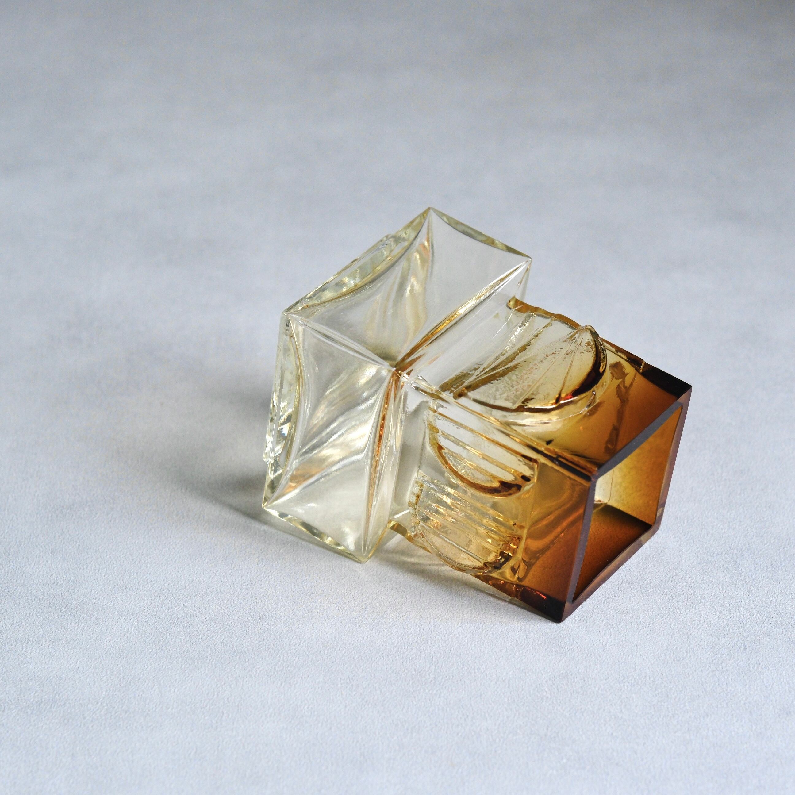 フィンランドの名門ガラスメーカー・Kumela(クメラ)社に置いて同国を代表するジュエリーデザイナーPentti Sarpaneva(ペンッティ・サルパネヴァ)が手掛けたヴィンテージベース。サルパネヴァの真骨頂とも言える、樹皮や氷といった自然のテクスチャを幾何学的に落とし込んだ独創的なレリーフが琥珀色の重厚なガラスに美しく表現されています。また、底面には、その希少性と作家性を証明する「Pentti Sarpaneva / Oy Kumela」のサインが丁寧に刻まれています。オブジェとしても空間に映える一点です。