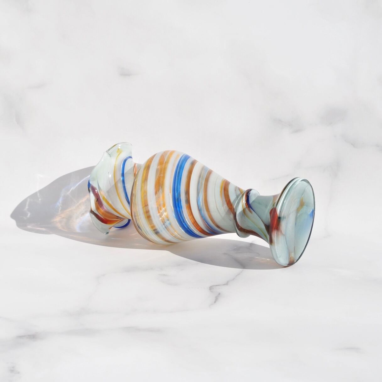 カラフルなマーブル模様に縁部分のラッフルが特徴のフラワーベース。ブルーやブラウンを基調とした甘すぎないカラーリングも魅力。オブジェとしても◎