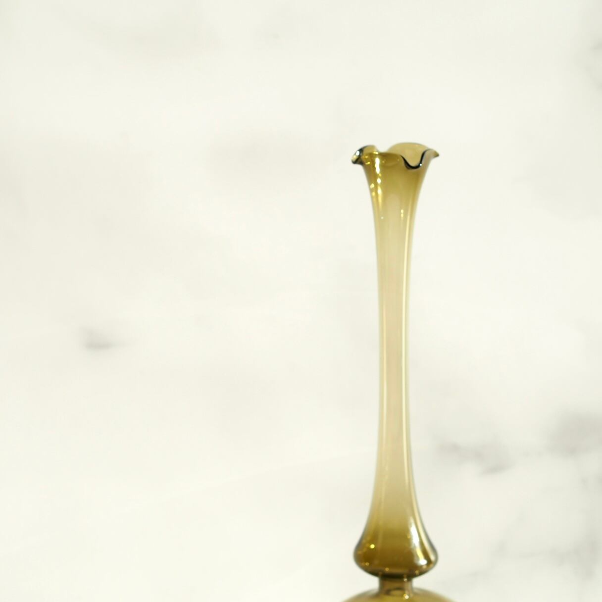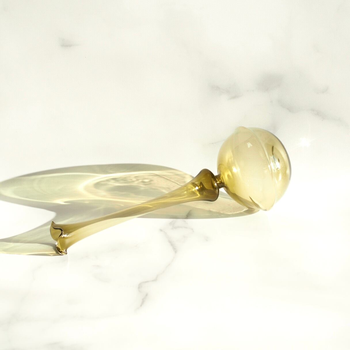 ドイツ中央に位置するチューリンゲン州の森の中にある小さなガラスの町、ラウシャで作られた手吹きガラス製のフラワーベース。薄く繊細なガラスの丸く膨らんだデザインはオブジェとしても花器としても存在感のある1点です。