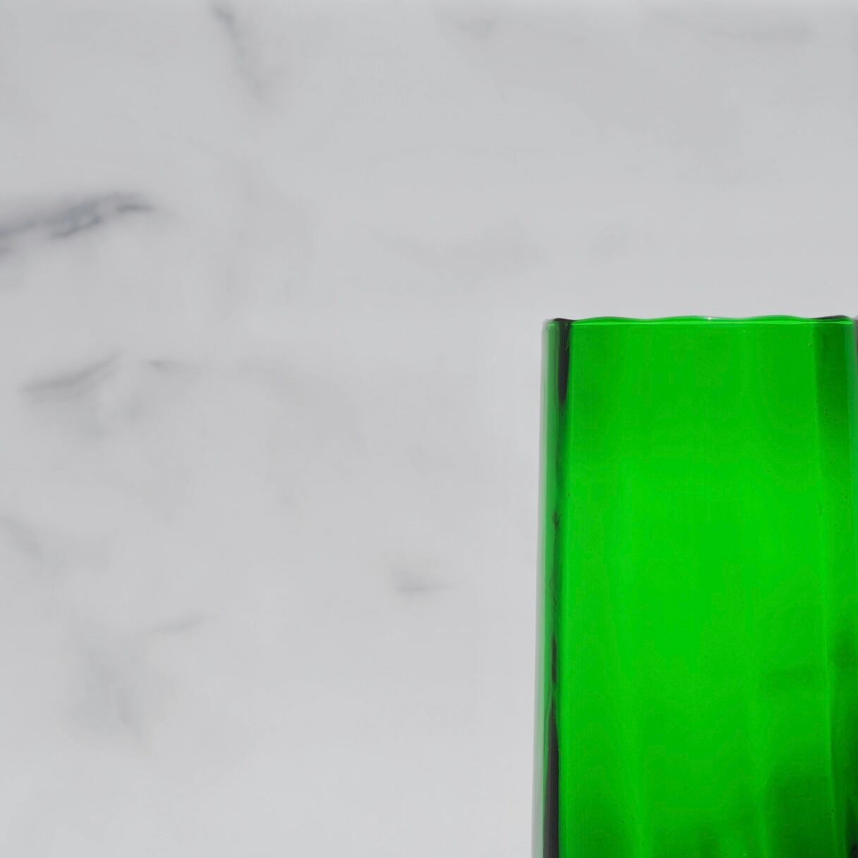 ベルギーで買い付けた大きなグラス型のフラワーベース。ツイスト状にデザインされたステム部分がポイントです。大ぶりの花にも負けない存在感と鮮やかな色合いで、ずっしりと安定感があります。オブジェとしても◎