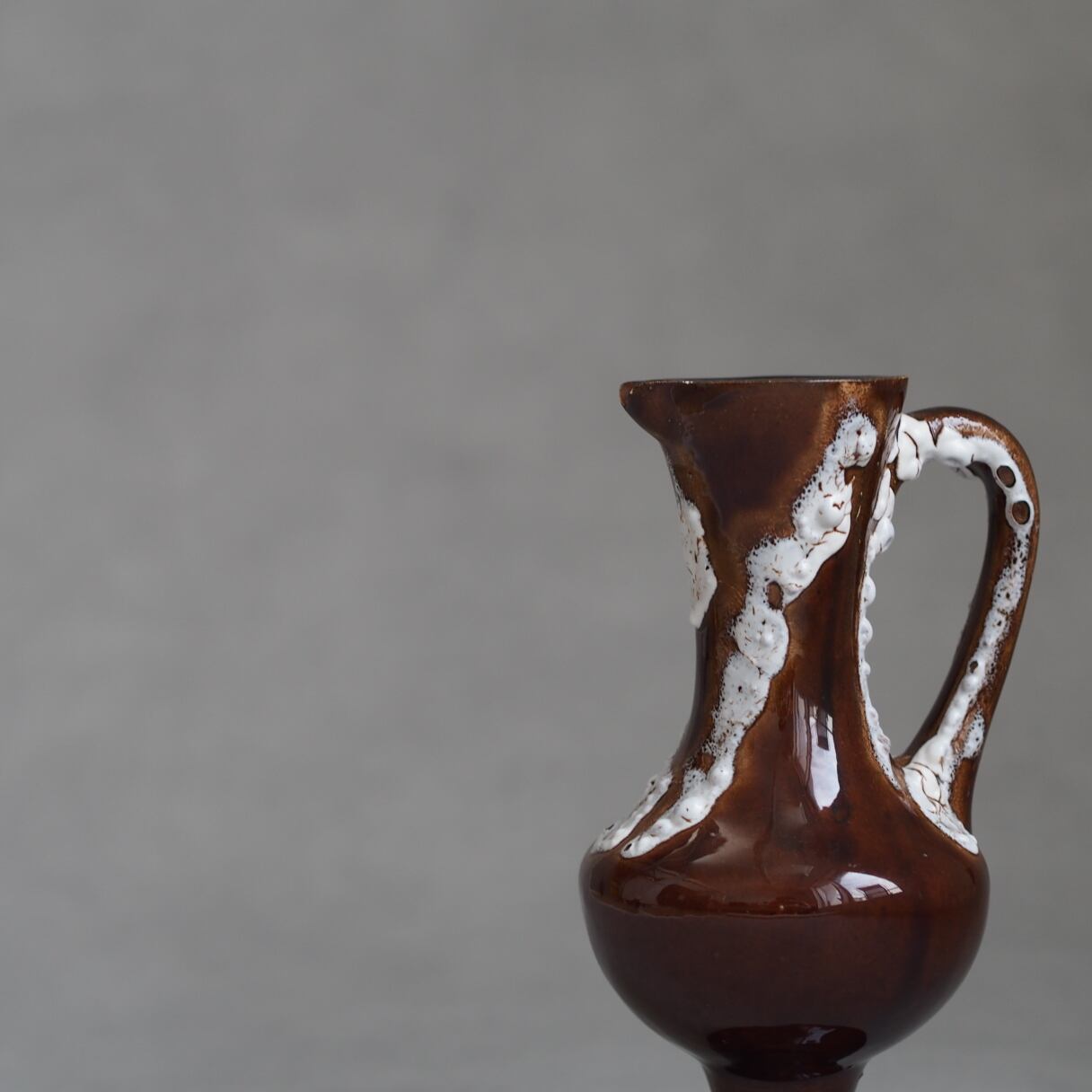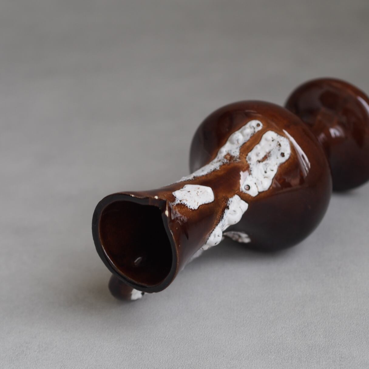 ベルギーで買い付けた陶器製のフラワーベース。艶のあるブラウンにボコボコとした白い釉薬がアクセントになっています。生花もドライフラワーもそれぞれ楽しめそうな1点。