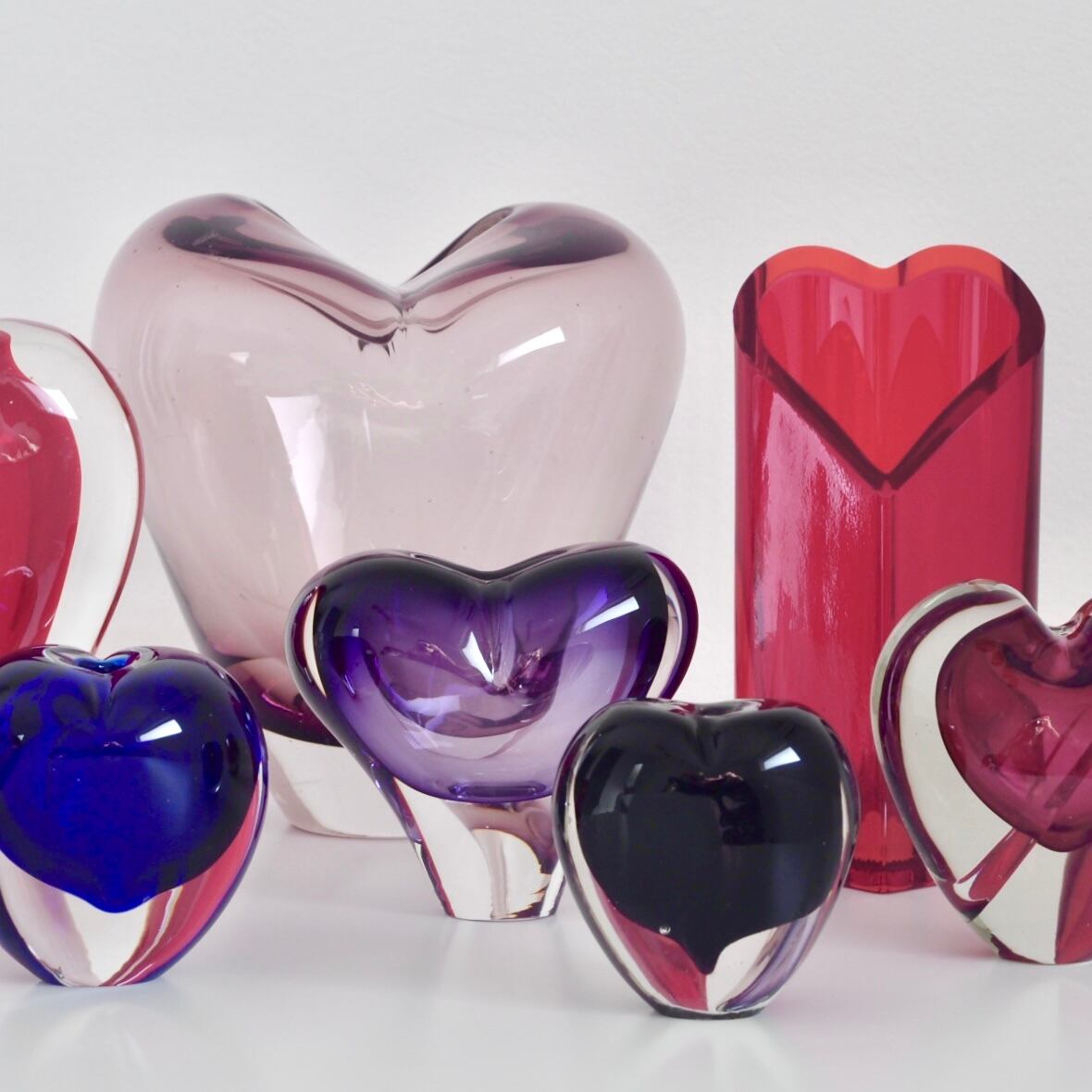 ブラジルで作られたクリスタルガラス製のハート型フラワーベース。クリスタルならではの透明感のあるガラスとパープルの色合いが美しい1点。小さいサイズながらずっしりと重厚感のある佇まいです。