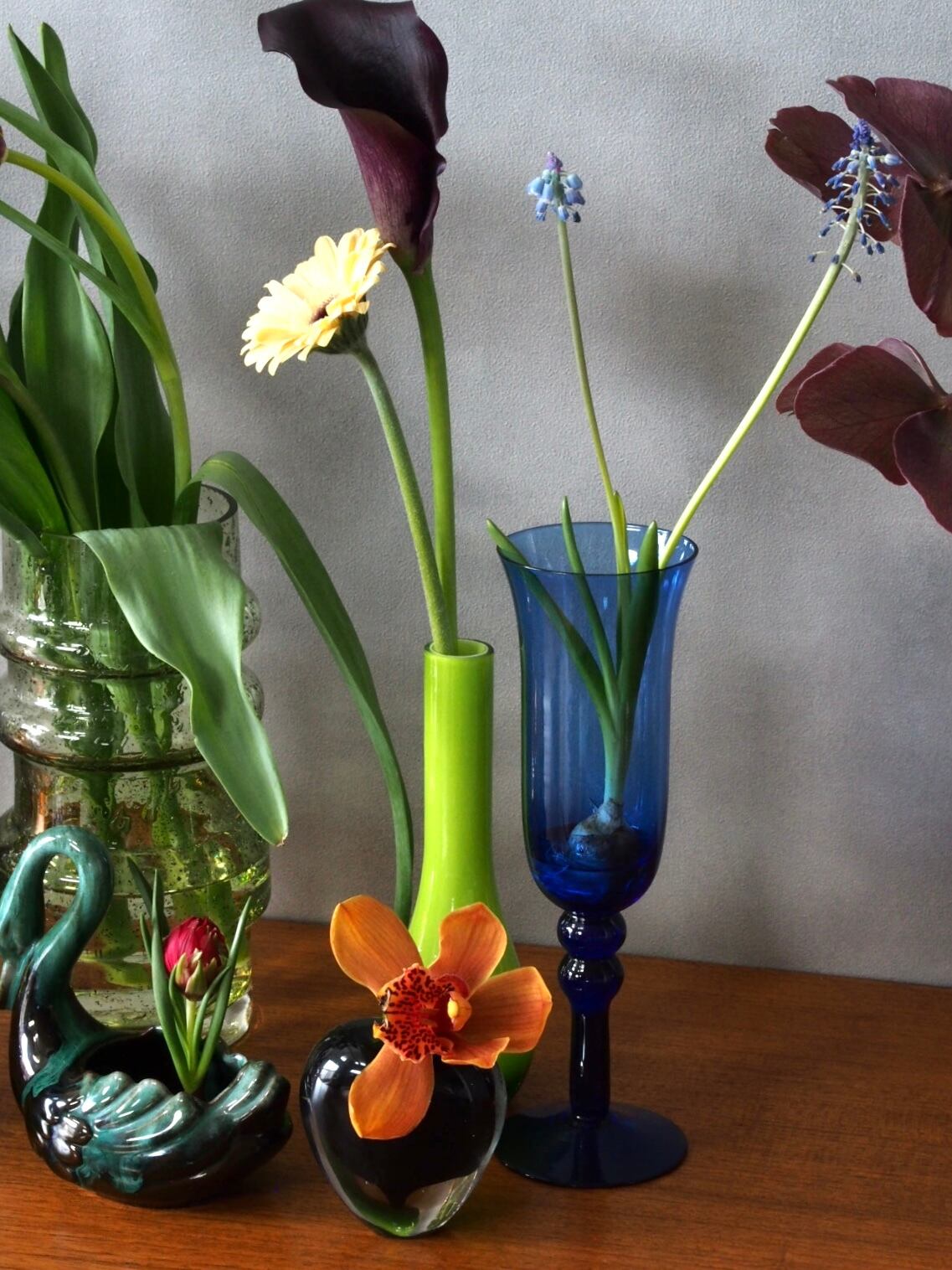コロンとした丸いフォルムが可愛いハート型の小さなガラス製フラワーベース。食卓やデスクなど場所を取らずに気軽に置けるサイズ感です。一輪挿し以外にペーパーウェイトとしても。花の色を引き立ててくれそうなブラックの色合いがポイント。