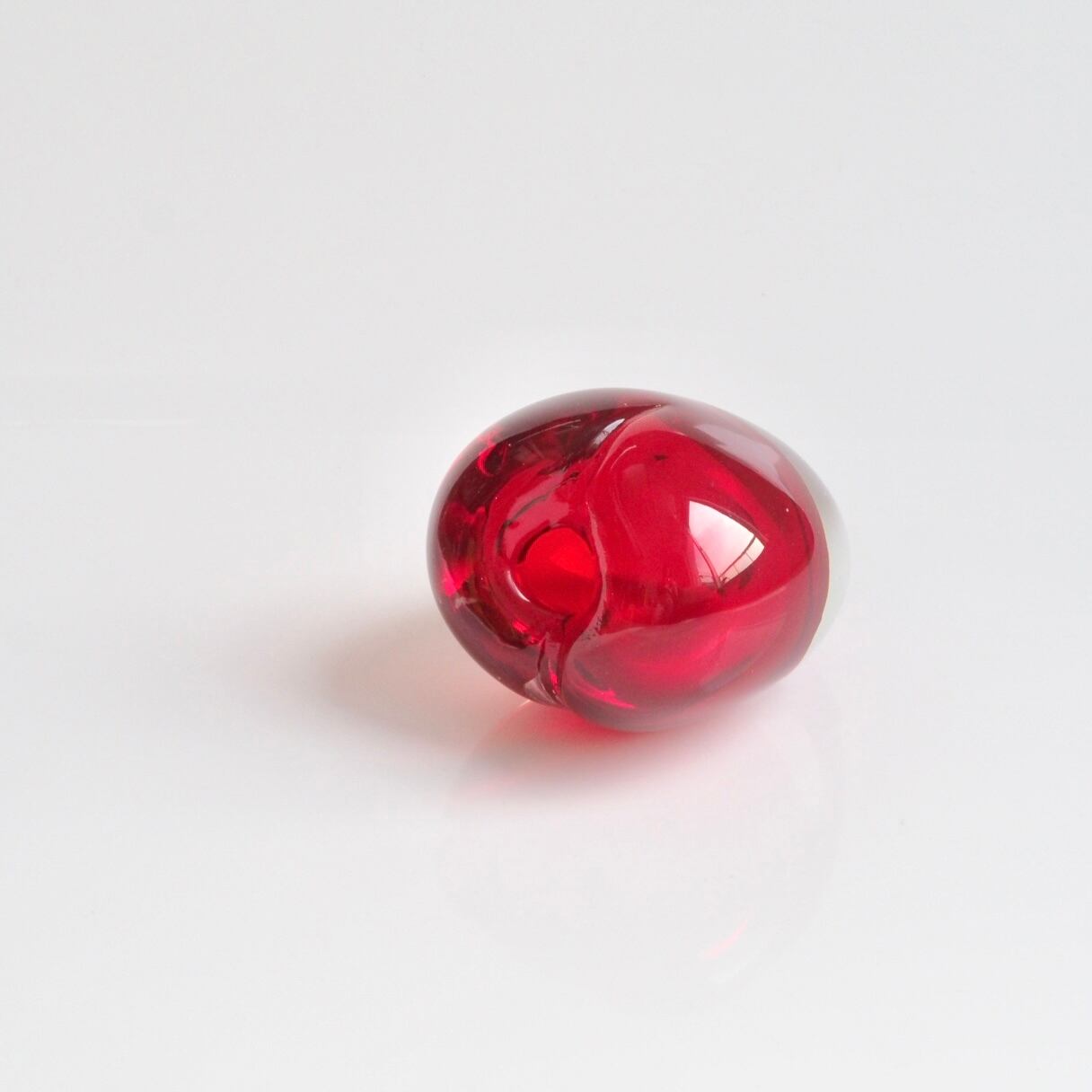 真っ赤な赤いガラス製のハート型フラワーベース。丸く膨らんだシルエットが可愛い1点。ずっしりと重厚感があります。オブジェとしても。