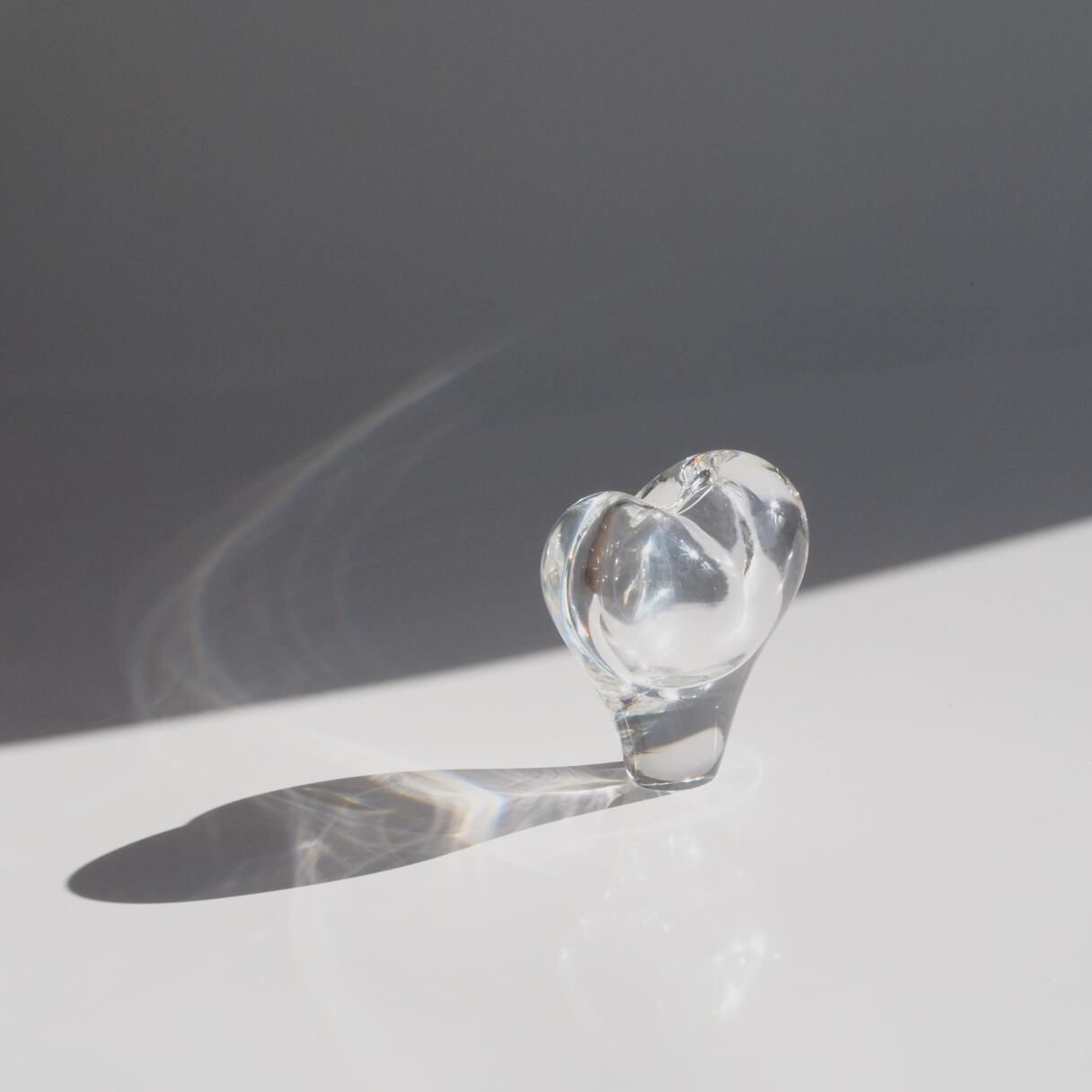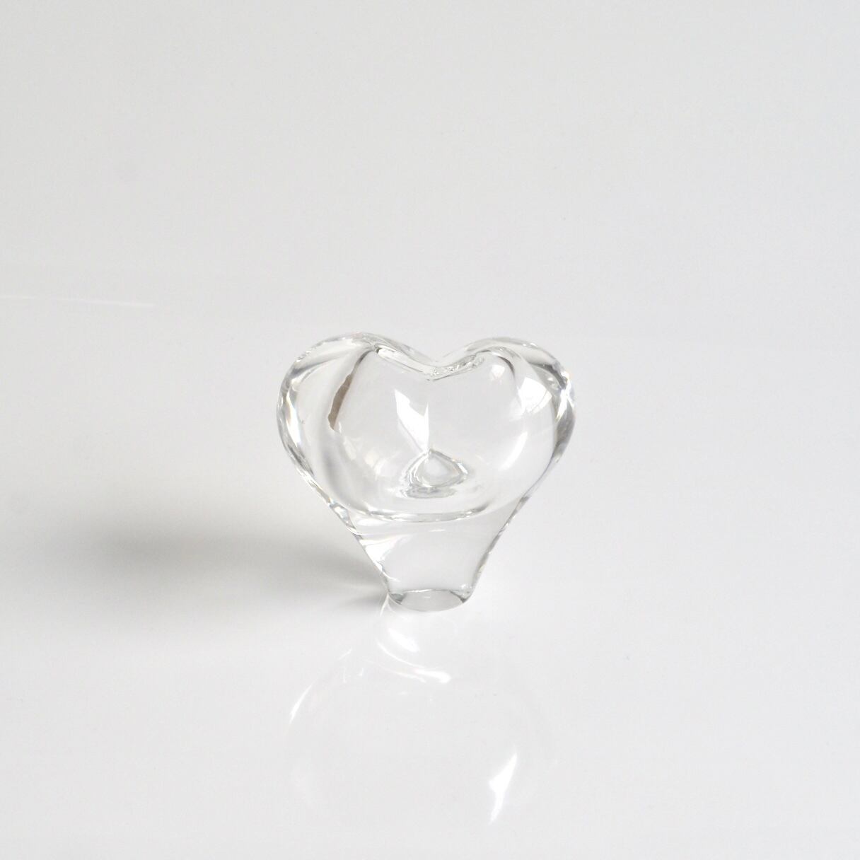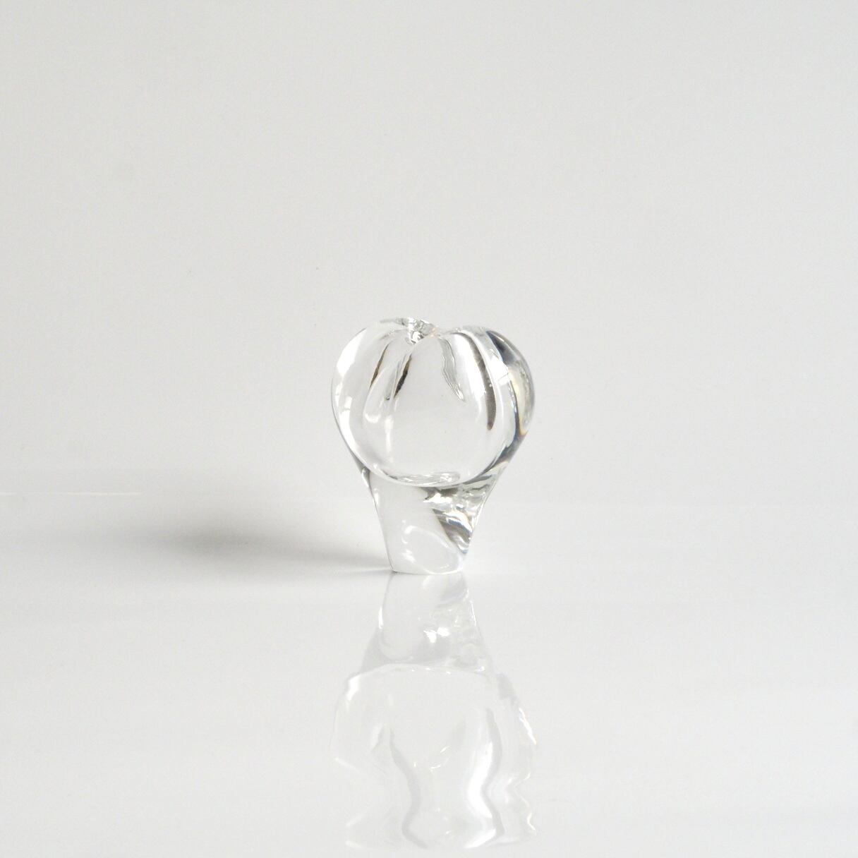 ガラス製のハート型フラワーベース。ぷっくりと膨らんだシルエットが可愛い1点です。花の色を選ばないクリアカラーも魅力。一輪挿しやオブジェとして、またはペーパーウェイトとしても。