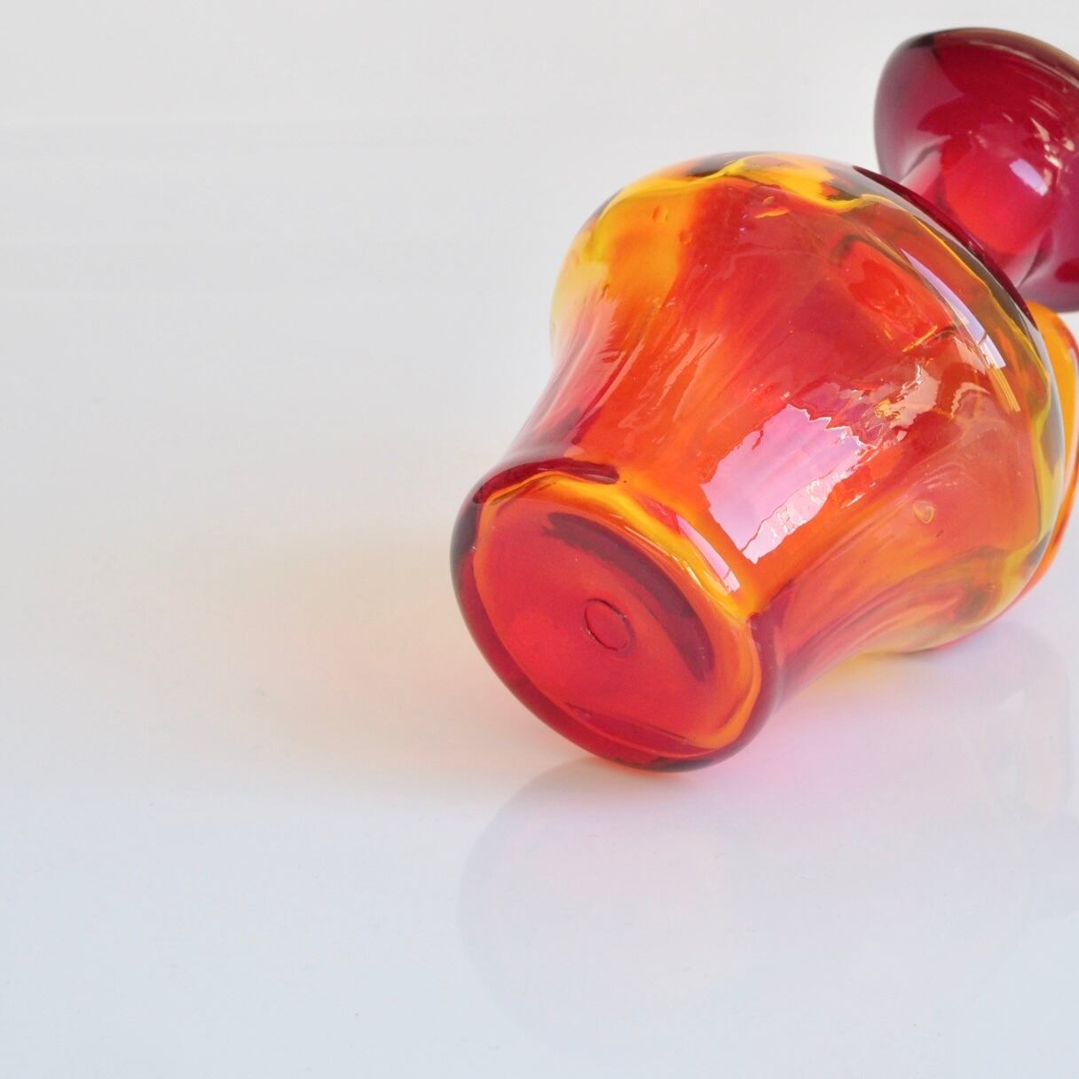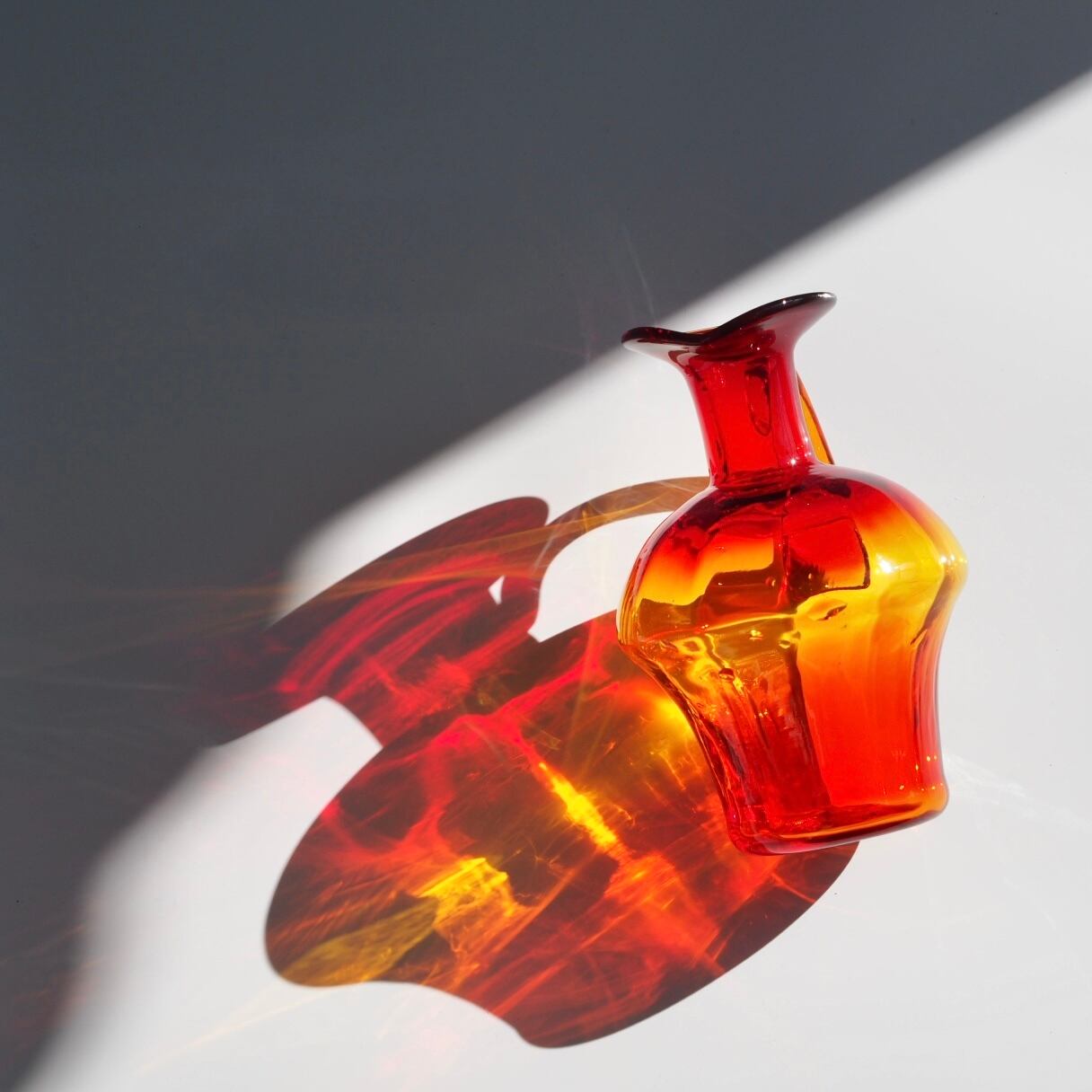 レッドとアンバーのツートンカラーのグラデーションが美しいピッチャー型フラワーベース。艶と透明感のあるガラスが光に当たるとより一層美しく輝きます。