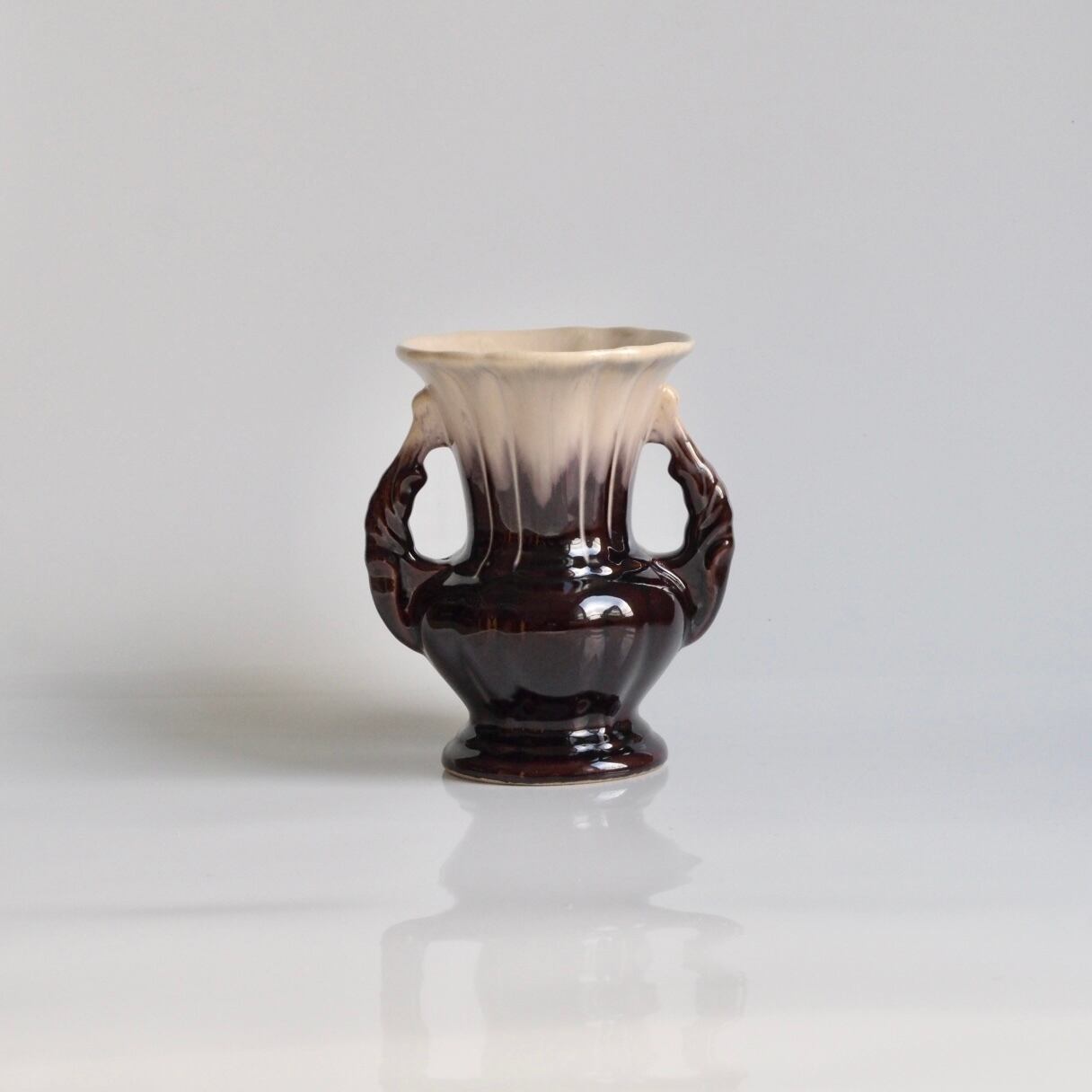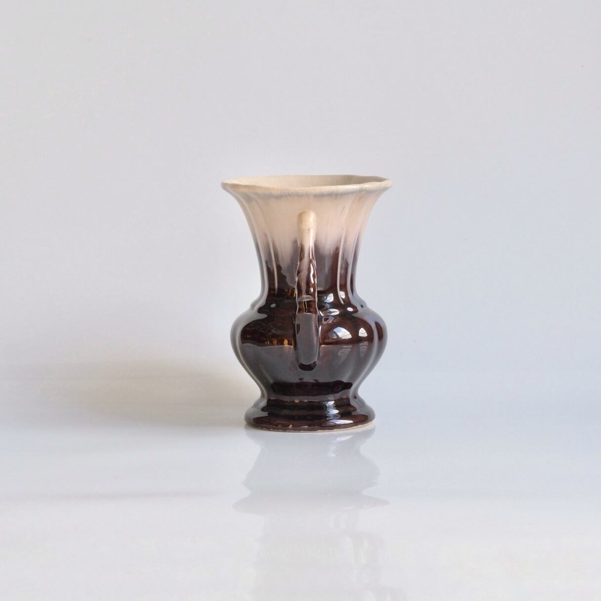 ベルギーで買い付けたドイツ製の陶器花瓶。艶のあるダークブラウンが雰囲気のある1点。花を生けやすいデザインとサイズ感。ドライフラワーにもオススメです。